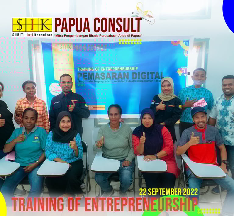 Kami menyediakan layanan konsultasi bisnis yang komprehensif, termasuk pelatihan dan pendampingan untuk membantu usaha Anda tumbuh dan berkembang di Papua.